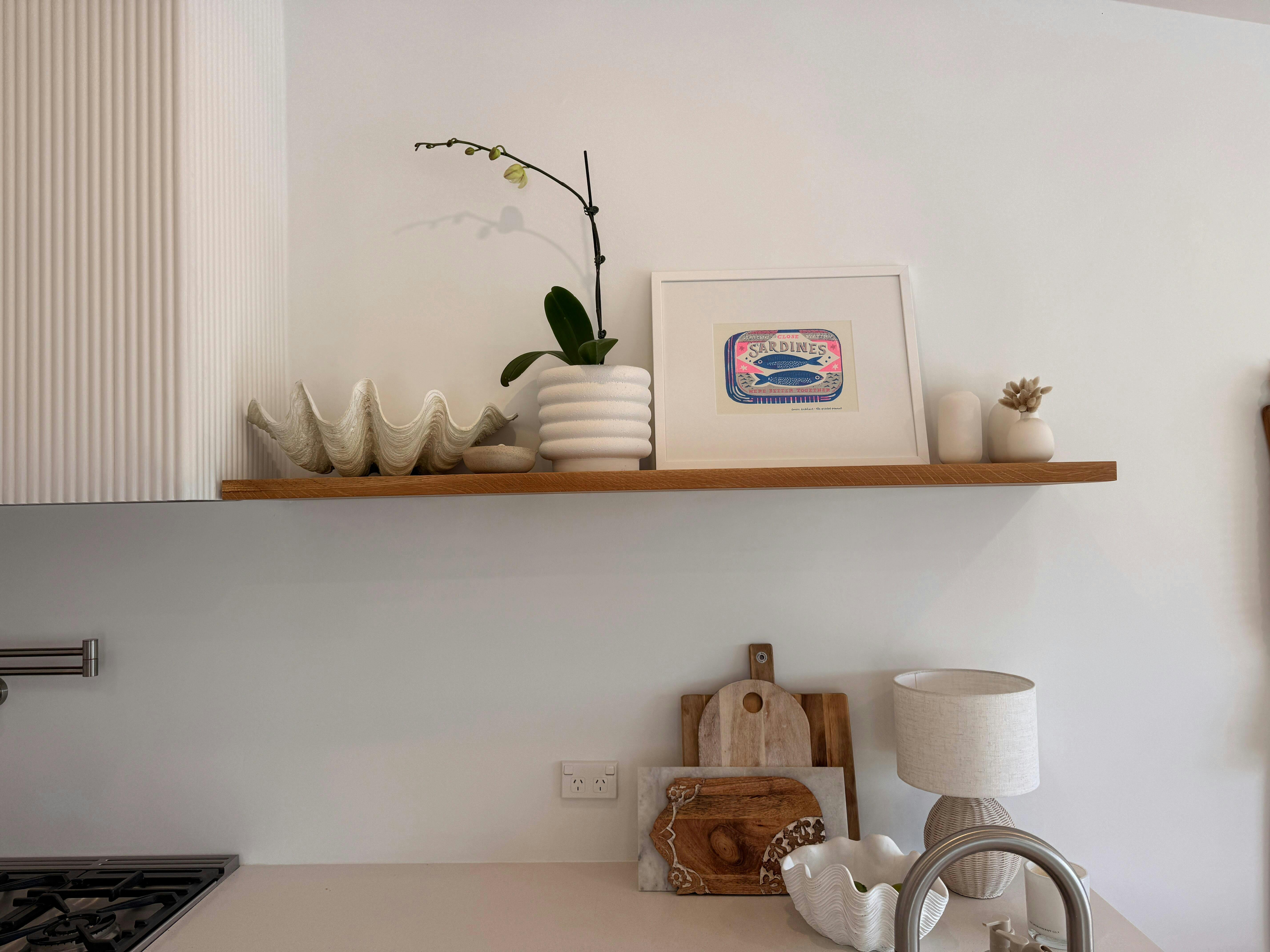 Shelves with a depth of more than 210mm may be manufactured using two pieces of timber glued lengthwise. We try to match the appearance of the two pieces but as this is a natural product there can be visual variations, which in our opinion makes it more beautiful. Grain profile between the two sections is also rotated 180 degrees to eliminate warping.